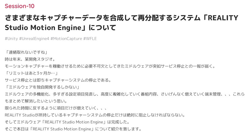 などを行っており、私と安川さんはREALITY社で独自に開発を行ったモーションキャプチャシステム、RSMEについて
