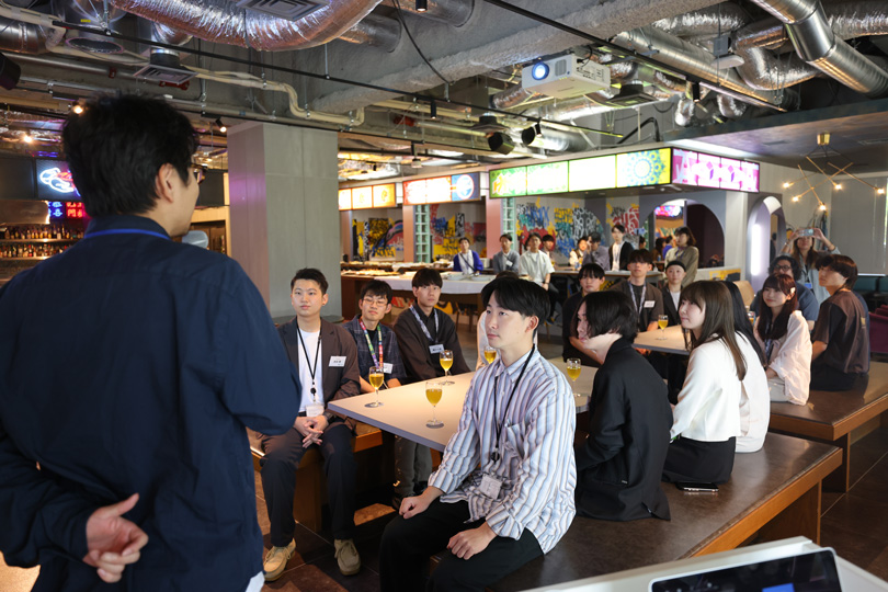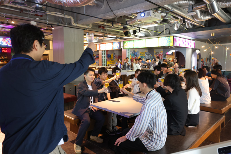 会が始まる前に、新卒採用の責任者を務める佐藤さんより乾杯の挨拶がありました。