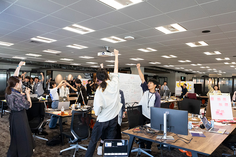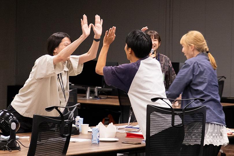 いよいよ優勝チーム発表。すべてのチームが固唾を飲んで結果を待つなか、審査員の柿沼さんが発表しました。選ばれたチームの皆さんは笑顔でハイタッチ!