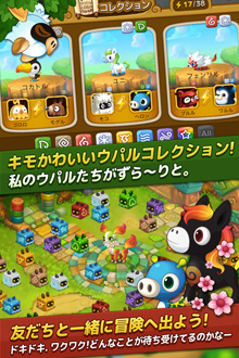このたびの日本リリースでは「ウパルフレンズ」とタイトル名を改め、新機能として図鑑やミッションの追加、ソーシャルアイテム販売など、新たなコンテンツが追加されています。また、ユーザーの利便性を追求してチュートリアルも改善され、初心者の方も簡単にゲームを楽しめるようになっています。さらに「GREE」での配信により、ユーザー同士で一緒にゲームをプレイすることができるようになる他、電子メール、Facebook、LINEなどを介して友達の招待も可能です。