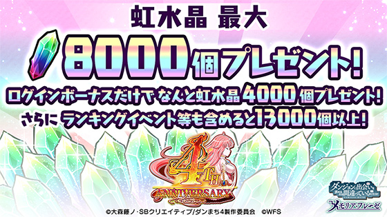 虹水晶最大8000個がもらえる4周年プロジェクトも開催