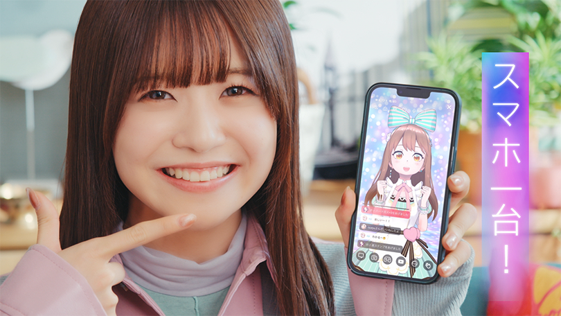 REALITYでは、全世界で累計1000万DLを突破したアプリ「REALITY」の魅力を発信するため、新テレビCMを制作しました。本CMは、実際のアプリを使用しながらスマートフォン一台でアバターを作成して、顔出しなしの配信が簡単にできる様子を表現する演出となっています。